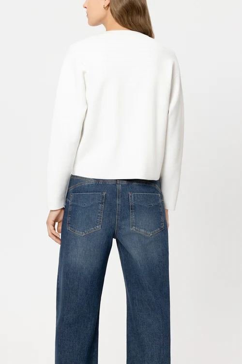 Kremowy kardigan Luisa Cerano o fasonie inspirowanym lekką bluzą to połączenie wygody i dopracowanego wykończenia. Model wykonany został z elastycznej, cienkiej dzianiny z dodatkiem certyfikowanej wiskozy Lenzing™ EcoVero™, która jest przyjemna w dotyku i dobrze układa się na sylwetce.