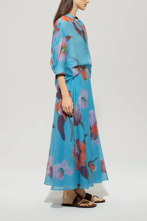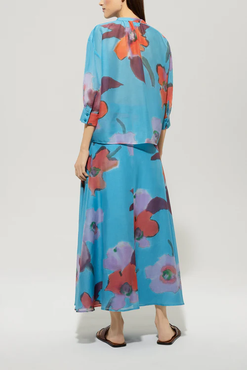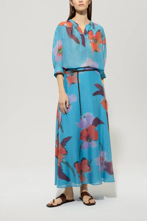 Luisa Cerano – Długa spódnica z woalu z nadrukiem hibiskusa