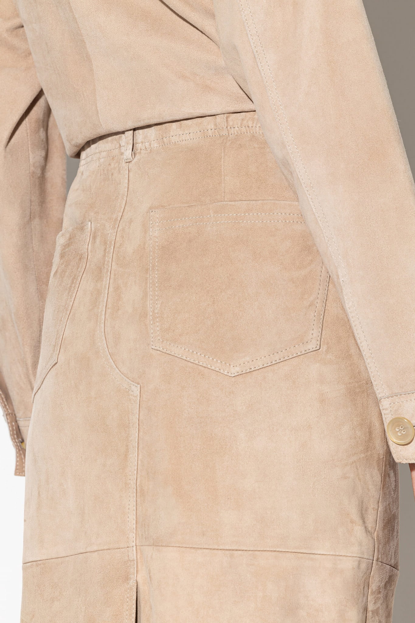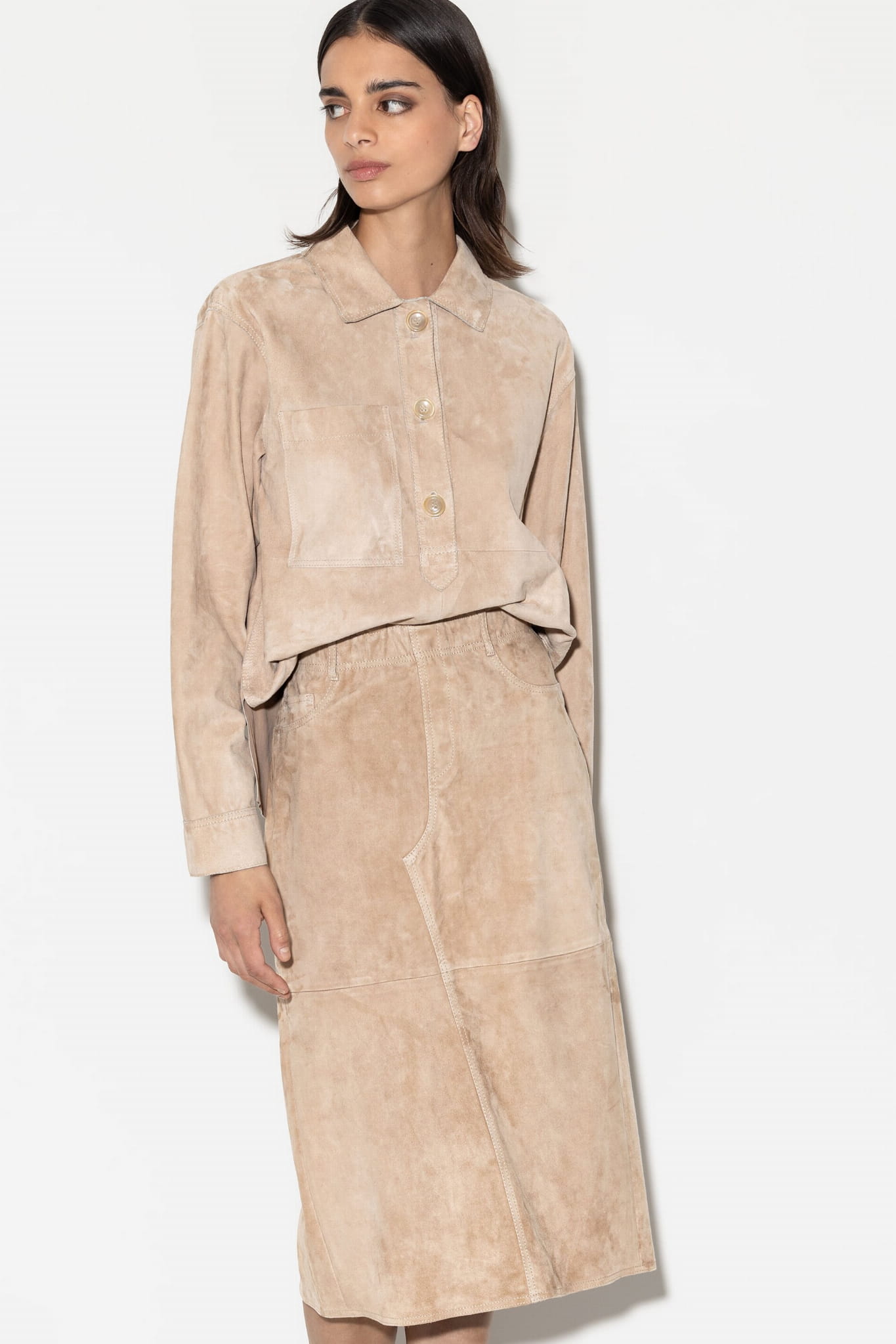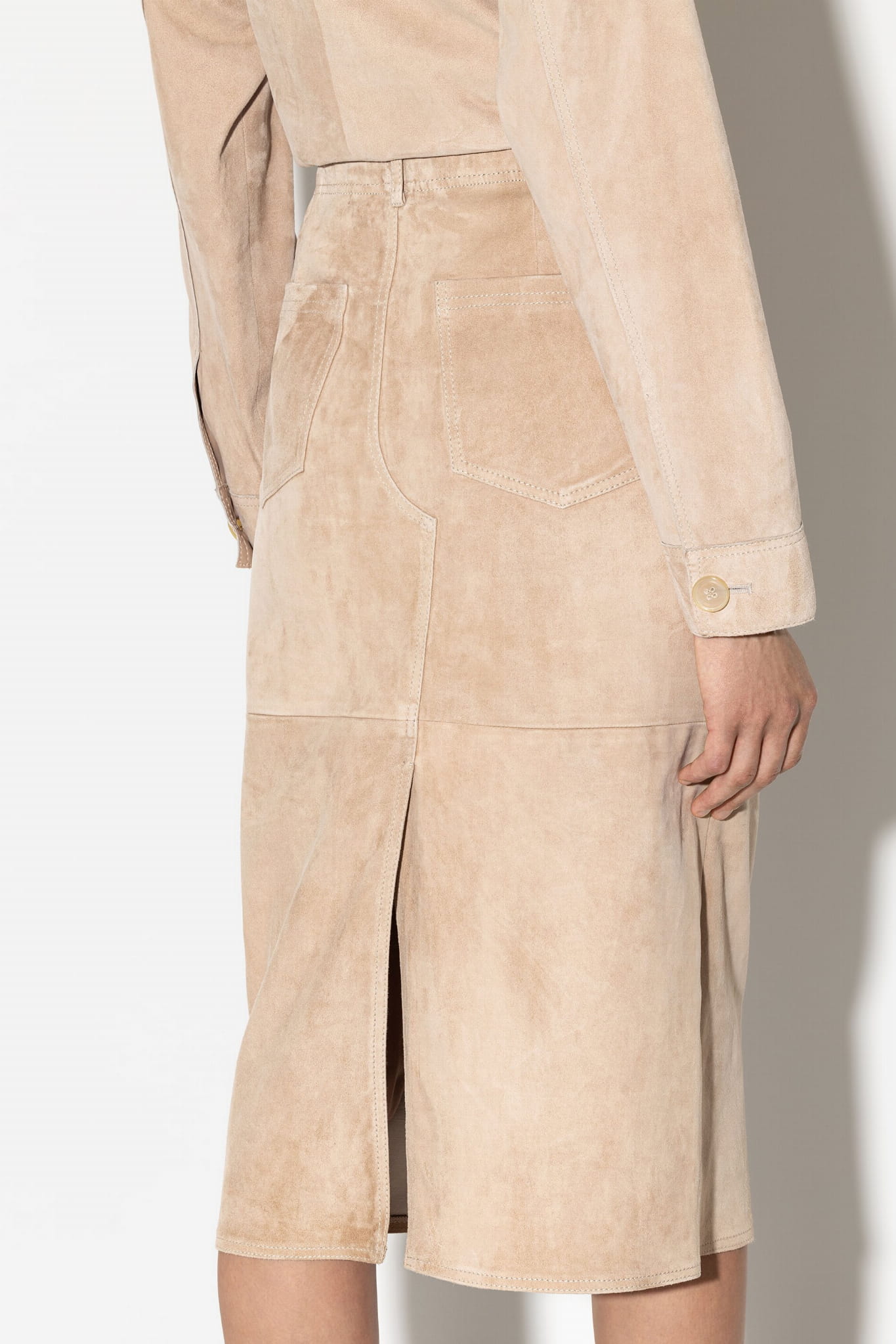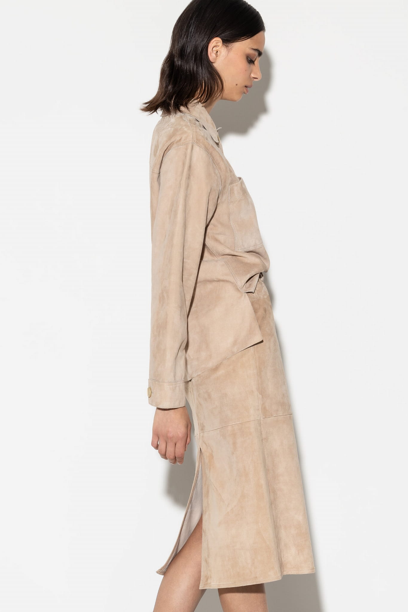 Spódnica Luisy Cerano z weluru koziego to połączenie luksusu i wygody. Wykonana z ultramiękkiego materiału, który delikatnie otula ciało, sprawiając, że noszenie jej to czysta przyjemność. Asymetryczne detale szwów i szwy dzielące nadają spódnicy niepowtarzalnego charakteru, podkreślając Twój indywidualny styl. Wysokie rozcięcie z tyłu dodaje subtelności i elegancji.