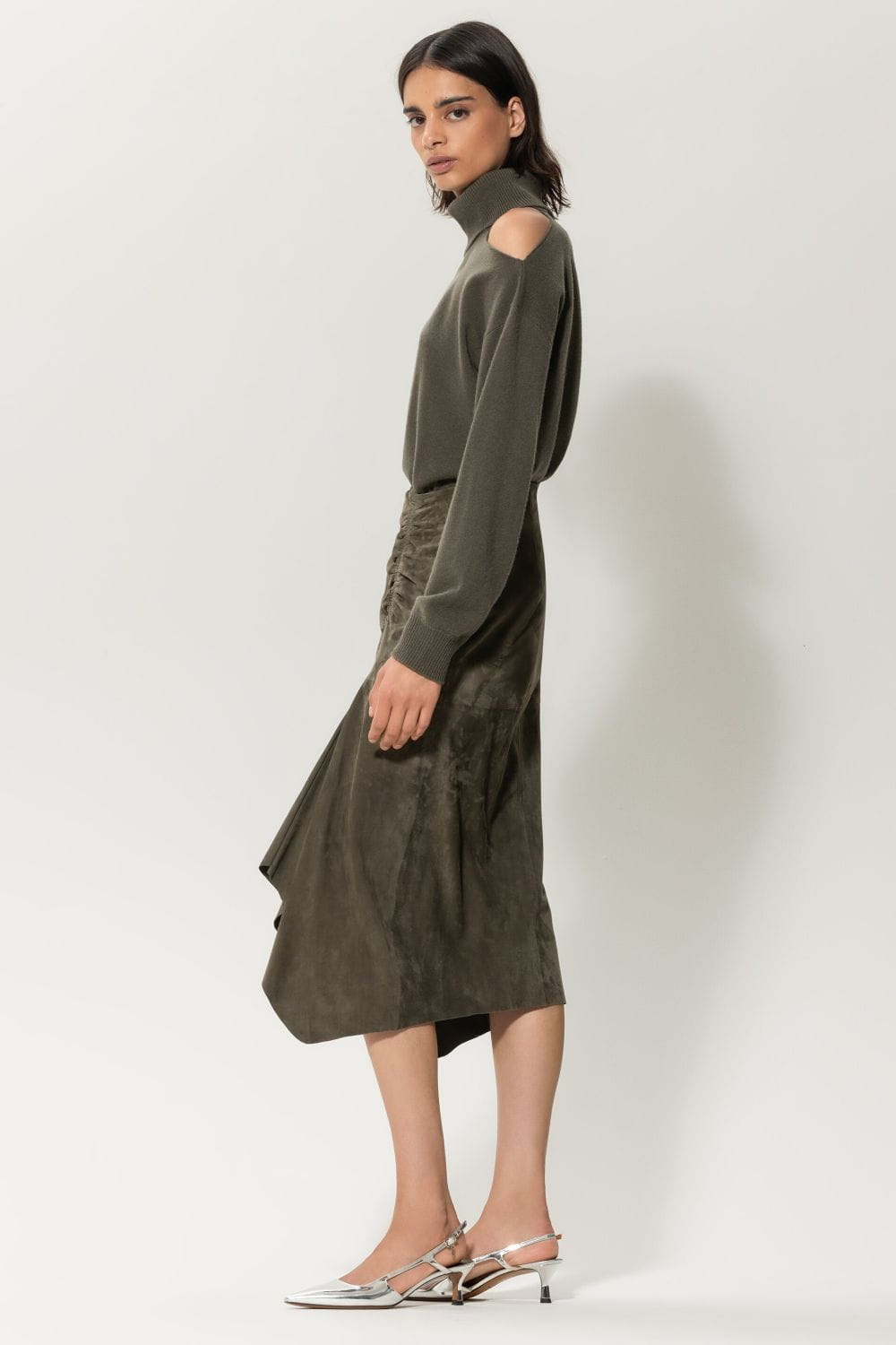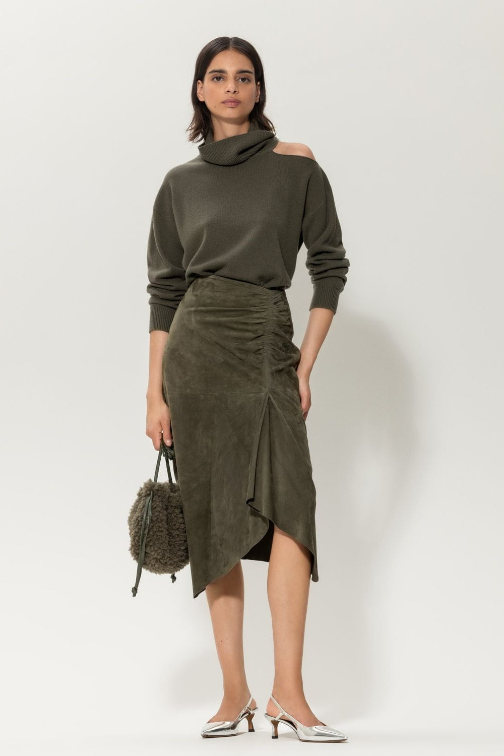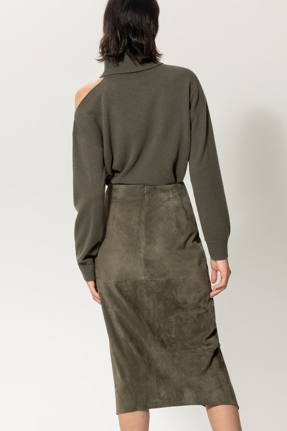 Luisa Cerano spódnica z koziego zamszu khaki