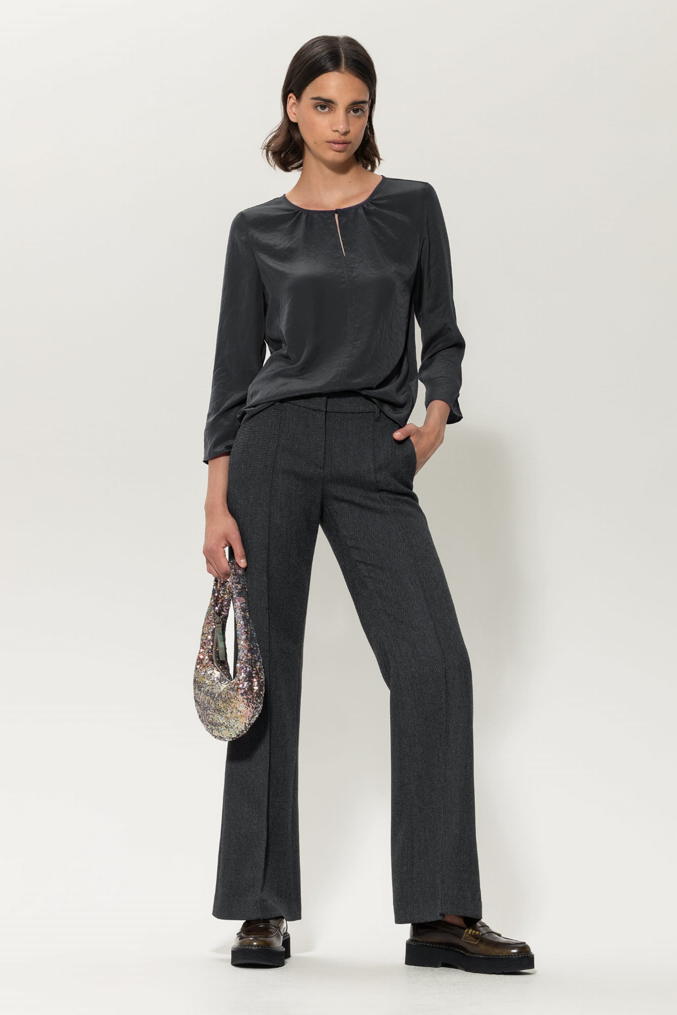 Spodnie Luisa Cerano połączenie klasyki z nowoczesnością, które odzwierciedla niepowtarzalny styl Luisa Cerano. Ich garbardynowy materiał w kolorze antracytowym prezentuje się doskonale, dodaje charakteru i elegancji całej stylizacji.