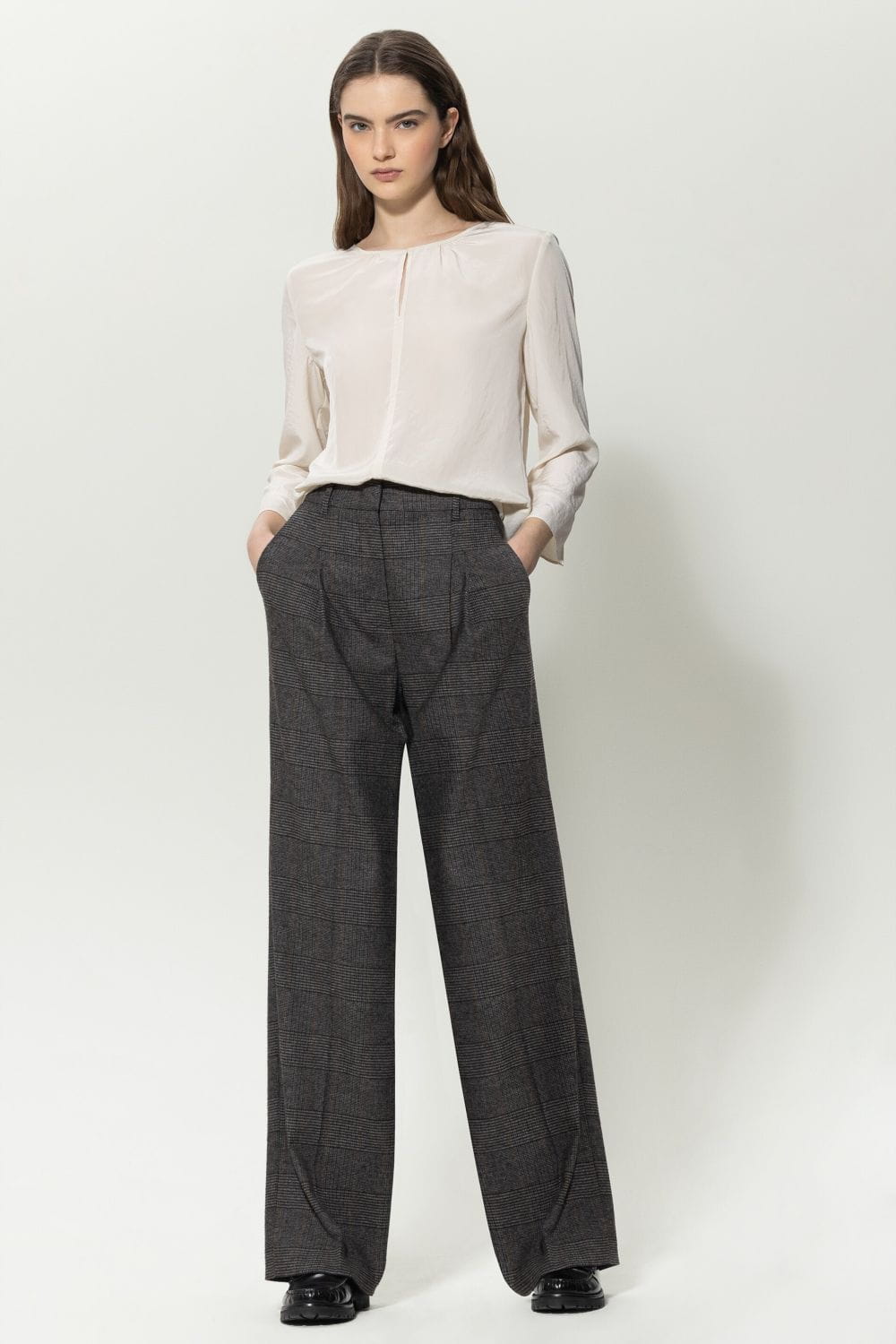 Spodnie z szeroką nogawką Luisy Cerano to wyraz ekskluzywnego stylu i wygody. Wielobarwny wzór w kratę Glen nadaje im niepowtarzalnego charakteru, stanowiąc modny element każdej stylizacji.