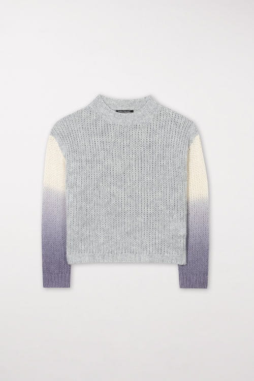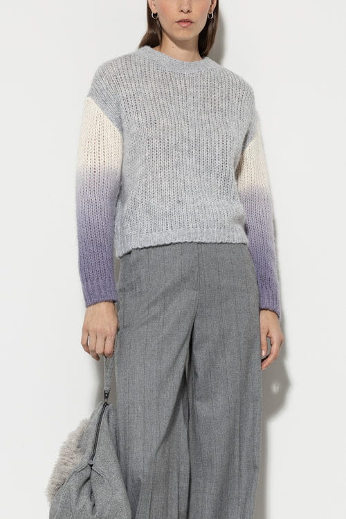 Rękawy w kontrastowym kolorze z subtelnym efektem natrysku dodają mu nowoczesnego charakteru, sprawiając, że sweter staje się wyjątkowym elementem każdej stylizacji. Idealnie sprawdzi się zarówno w codziennych, jak i bardziej eleganckich zestawieniach. Połącz go z ulubionymi jeansami lub spódnicą, aby stworzyć modny look na każdą okazję.